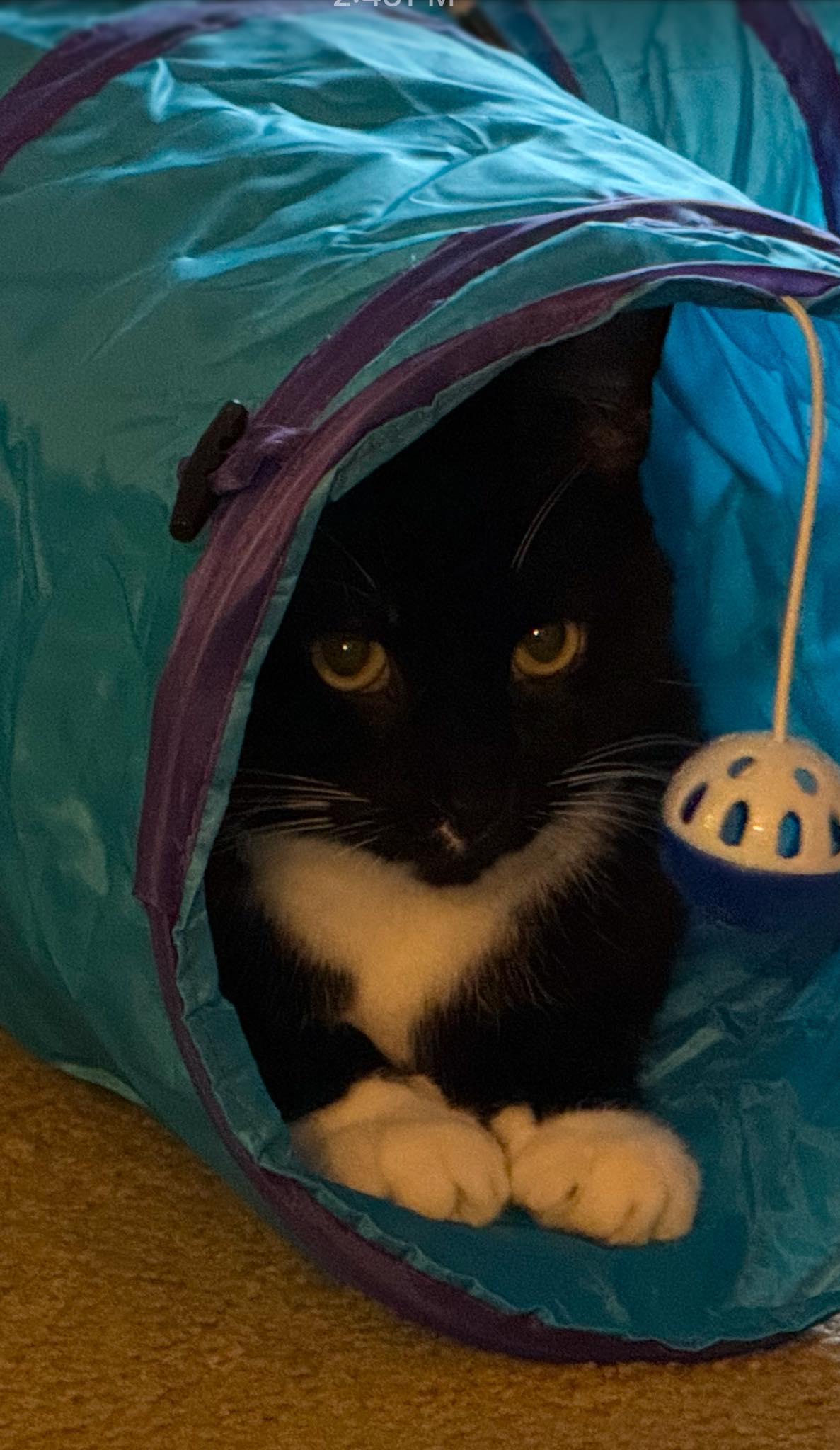 They both got tunnels and cat-stockings with toys.
